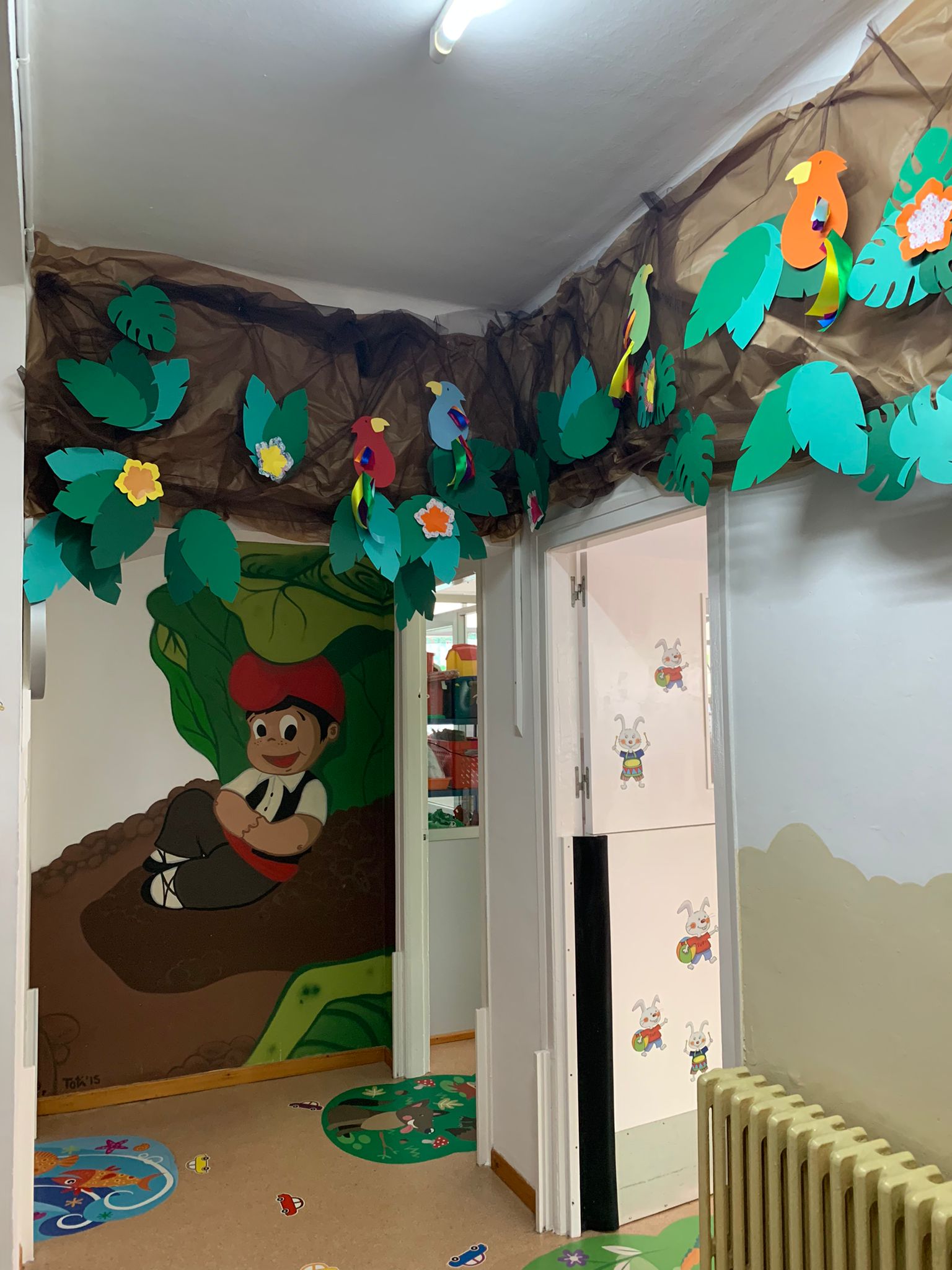 el mercat, a través del qual coneixem fuites, verdures i tot el que podem trobar a un mercat. També treballem els colors i les formes.